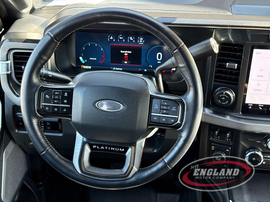 Order Code 703A: Fixed 10. 000 lbs GVWR Package; TorqShift 10-Speed Automatic Transmission; 20"" Bright Machined and Painted Aluminum Wheels; LT275/65Rx20E BSW A/T Tires; Unique Platinum Leather 40/console/40 Seats; 3.73 Axle Ratio; B&O Unleashed Sound System by Bang & Olufsen Radio; 7.3L 2V DEVCT NA PFI V8 Gas Engine. Star White Metallic TC. Front and Rear Wheel Well Liners. Front Splash Guards/mud Flaps. **Equipment listed is based on original vehicle build and subject to change. Please confirm the accuracy of the included equipment by calling the dealer prior to purchase.**