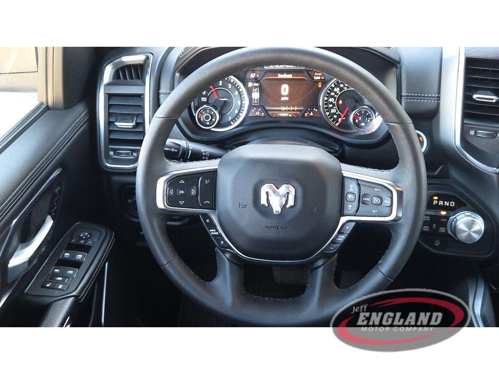 Quick Order Package 21H Laramie. Laramie Level 1 Equipment Group. Bed Utility Group: MOPAR Spray in Bedliner; MOPAR Deployable Bed Step; MOPAR 4 Adjustable Cargo Tie-Down Hooks; Exterior 115V AC Outlet. Laramie Southwest Edition: Accent Color Premium Power Mirrors; Exterior Mirrors with Supplemental Signals; Power Deployable Running Boards; Exterior Mirrors Courtesy Lamps; RAM Grille Badge - Chrome; Auto Power-Folding Mirrors; Grille Surround 3 Body Color Tex 4 Chrome; Exterior Mirrors with Heating Element; Auto Dim Exterior Driver Mirror; Trailer Brake Control; Exterior Mirrors with Memory; Tow Hooks; MOPAR Lockable Console Storage; Body Color Front Bumper; Convex Wide-Angle Exterior Mirror Insert; Dual-Pane Panoramic Sunroof; Body Color Rear Bumper with Step Pads; Black Painted Exterior Mirrors Caps. Dual-Pane Panoramic Sunroof. Leather Trimmed Bucket Seats. Power Deployable Running Boards. Anti-Spin Differential Rear Axle. 33 Gallon Fuel Tank. Trailer Brake Control. MOPAR Front and Rear Rubber Floor Mats. 3.92 Rear Axle Ratio. **Equipment listed is based on original vehicle build and subject to change. Please confirm the accuracy of the included equipment by calling the dealer prior to purchase.**